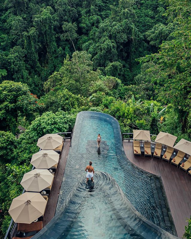 Kolam infinity di Ubud Forest sangat menakjubkan; itu seperti berada di atas surga.