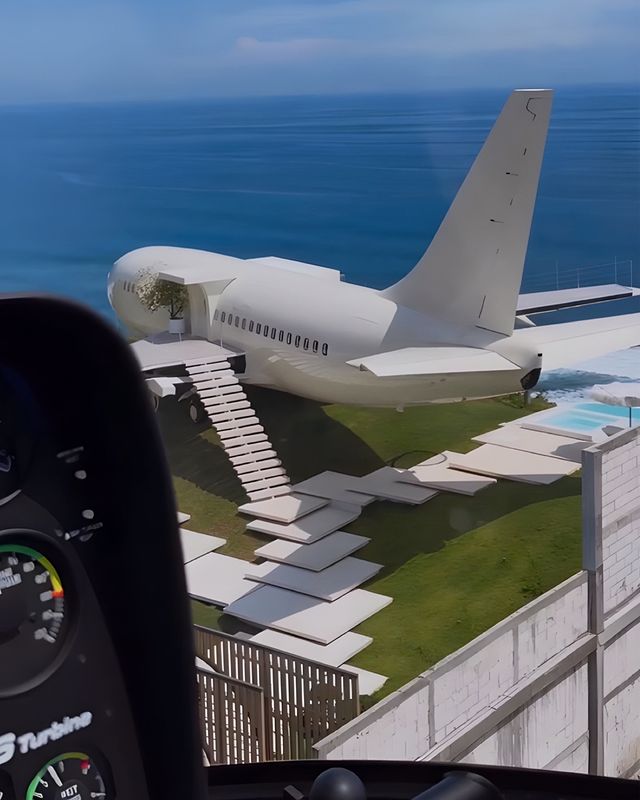 In southern Bali, a Boeing 737-200 sits dramatically on a cliff 150 meters above Nyang Nyang Beach. Moved to this spot in 2021, it offers adventurous visitors a chance to climb onto its wing at sunset and will soon be converted into a unique villa stay.