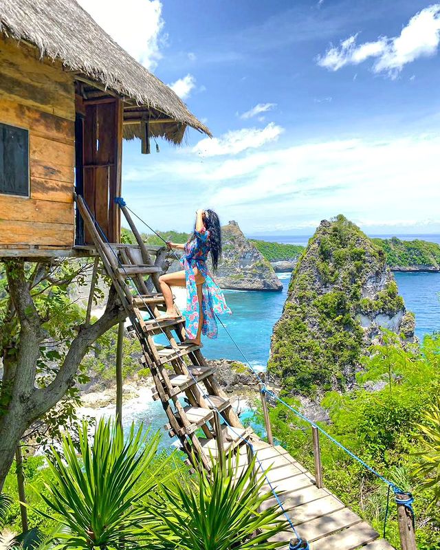 Menginap di rumah pohon di Nusa Penida mirip dengan menginap di film Tarzan. Itu adalah pemandangan laut yang luar biasa!