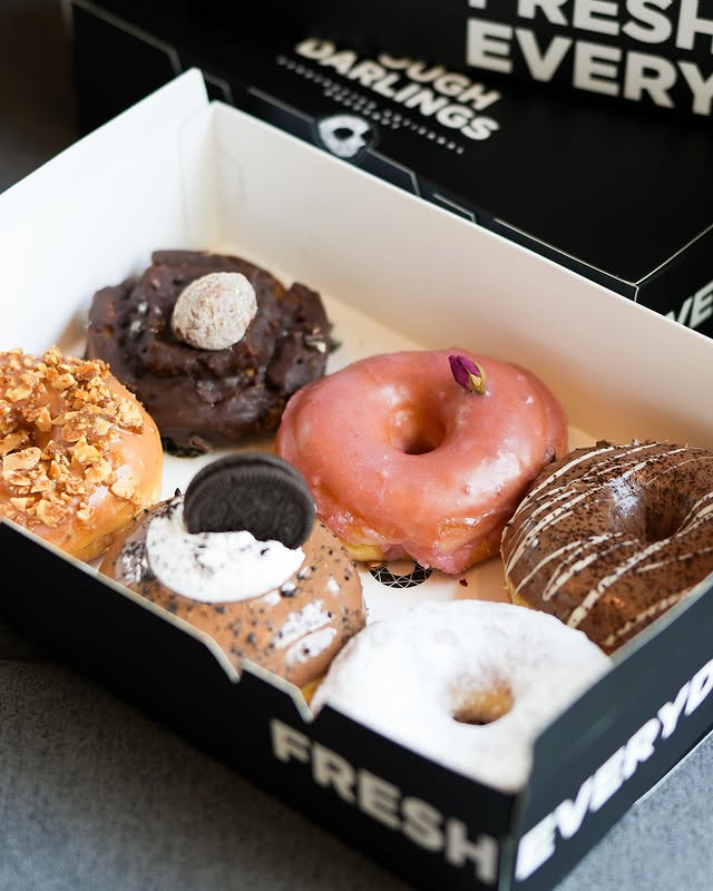 Craving a delightful and joyful dessert experience? Look no further than Dough Darlings! Indulge in our scrumptious doughnuts made with premium ingredients like whole milk, European-style butter, cane sugar, and real fruits, resulting in a delicious and distinctive flavor. Our menu includes vegan options, as well as top-rated choices like peanut butter and chocolate. Treat yourself to a burst of happiness at Dough Darlings!