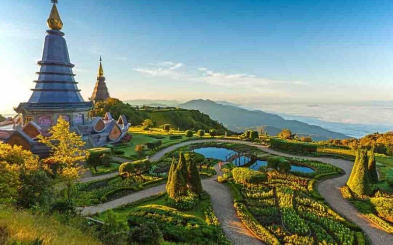 Doi Inthanon National Park in Chiang Mai, home to Thailand’s highest peak at 2,565 meters, features lush forests, waterfalls, and panoramic mountain views. Visitors can enjoy hiking trails, vibrant flora, rare bird species, and stunning natural beauty.