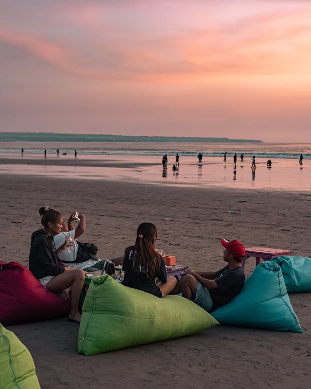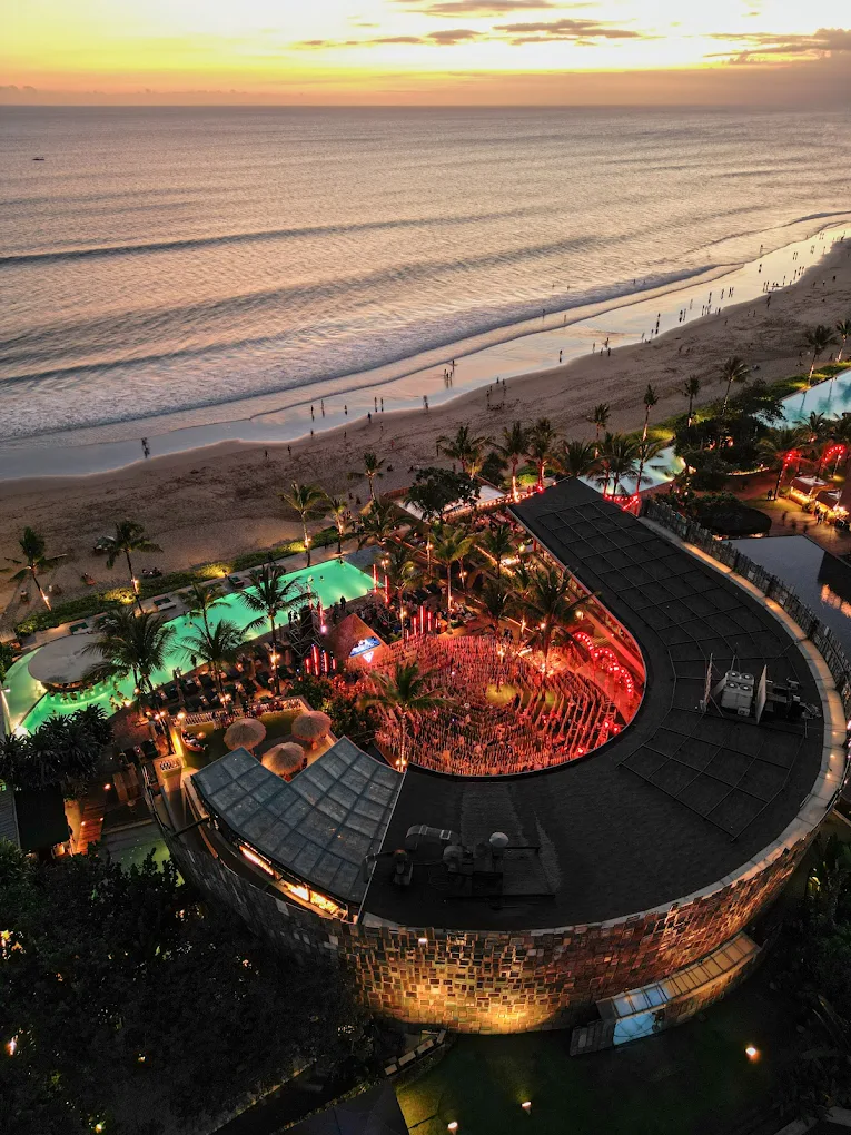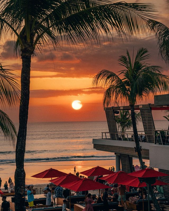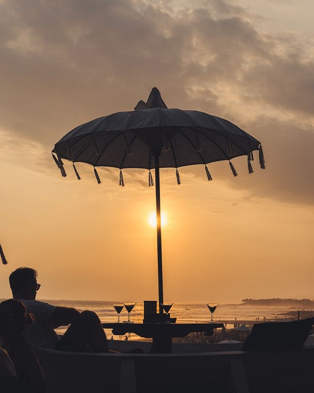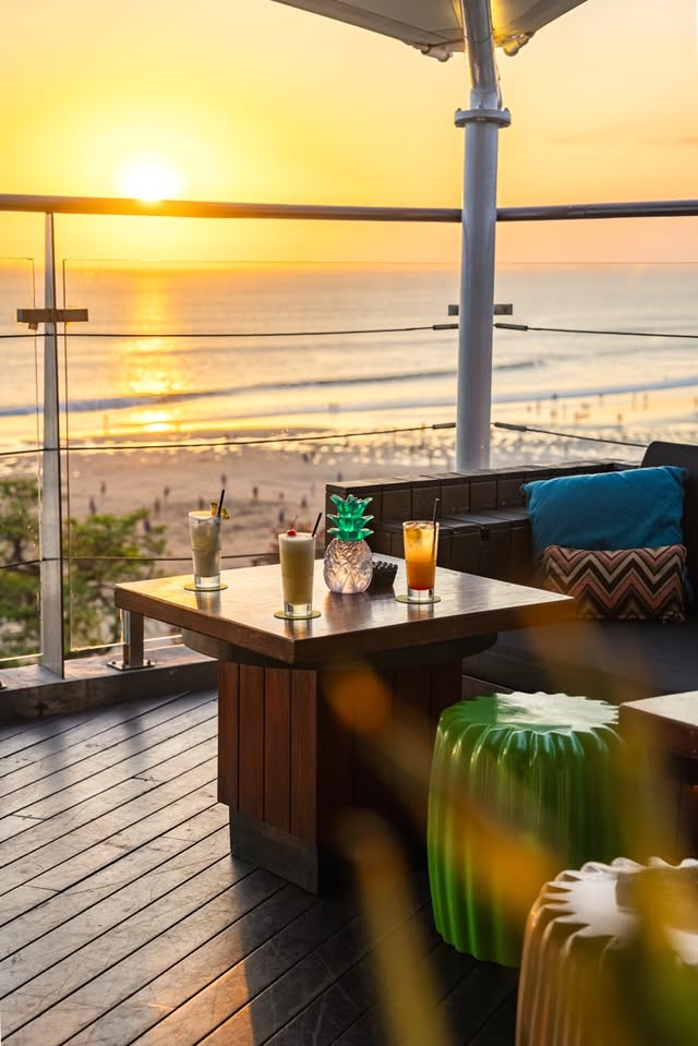 With its stylish, minimalist design and direct access to the sand, this resort offers the perfect sunset spot. Head to the Beach Bar for innovative cocktails, cold beer, and delicious bites like truffle fries and thin-crust pizzas, all while enjoying a front-row view of Bali’s breathtaking sunset. Lounge on comfy sofas or beanbags as the sky transforms, making it the ultimate place to unwind. Open daily from 12 pm to 8 pm, with extended hours until 9 pm on weekends.