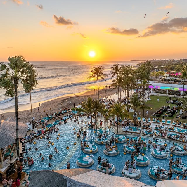 This laid-back beach escape is perfect for sunset lovers seeking a serene yet stylish atmosphere. With its charming rustic vibe and unique infinity pool, it’s the ultimate spot to relax as the sun dips below the horizon. Savor a menu filled with mouthwatering beachside favorites—juicy burgers, fresh seafood, and Indonesian delights—paired with signature cocktails or a glass of fine wine. Whether you’re lounging poolside or enjoying the vibrant evening ambiance, every moment here feels like a tropical dream.