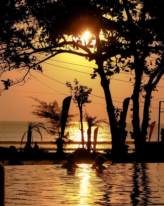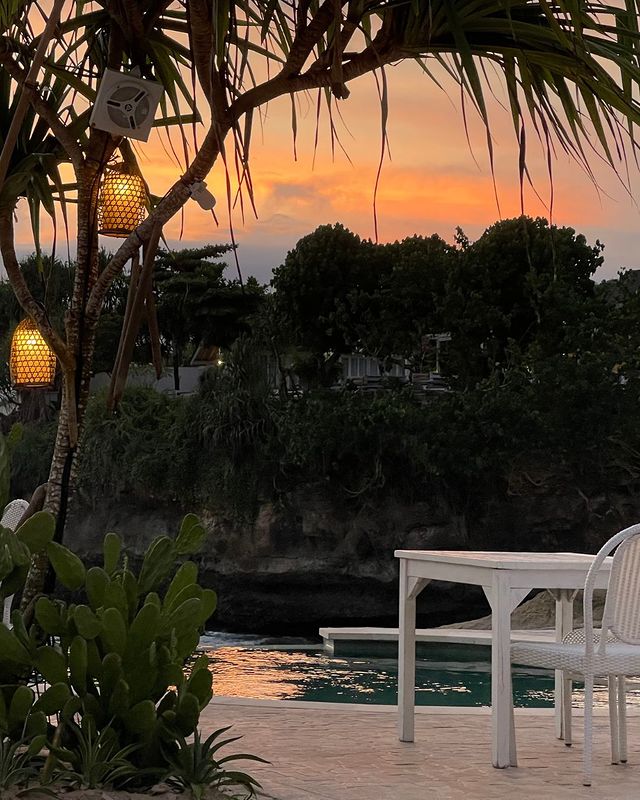 Enak banget duduk-duduk di bean bag sambil lihat matahari terbenam. Kalau mau, bisa berenang juga!