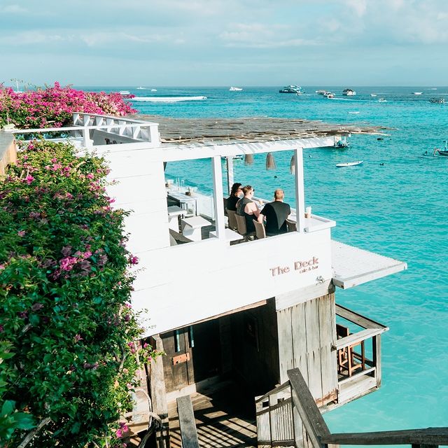 The Deck is a café, deli and cocktail bar situated on the waterfront boardwalk of Nusa Lembongan, which offers a breathtaking view of the beach and commanding Mount Agung. You can enjoy delicious food such as tostadas, poke bowls, pizzas and doughnuts while watching the peaceful lagoon and sunset. Additionally, the bar serves up icy cold beers and signature cocktails that are simply stunning.