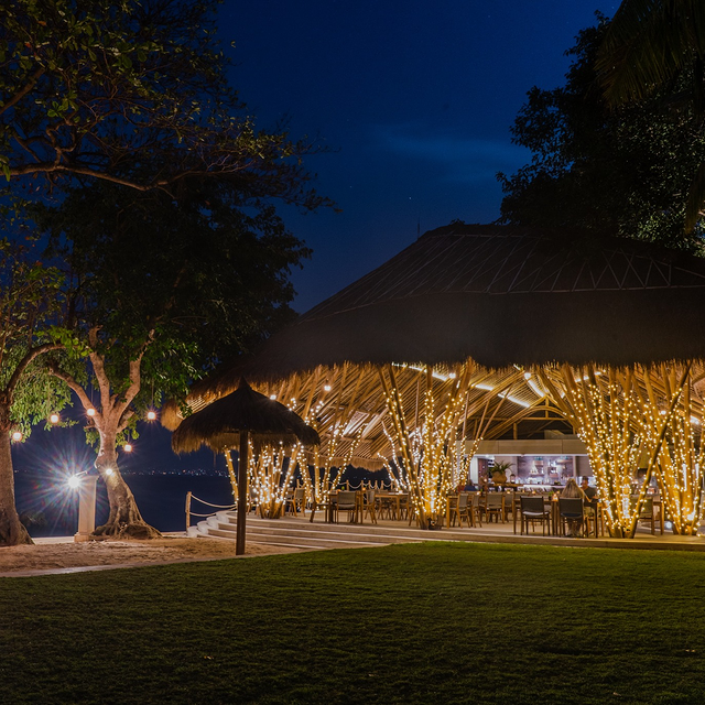 Provides beachfront huts, a restaurant, a bar, and an outdoor pool.