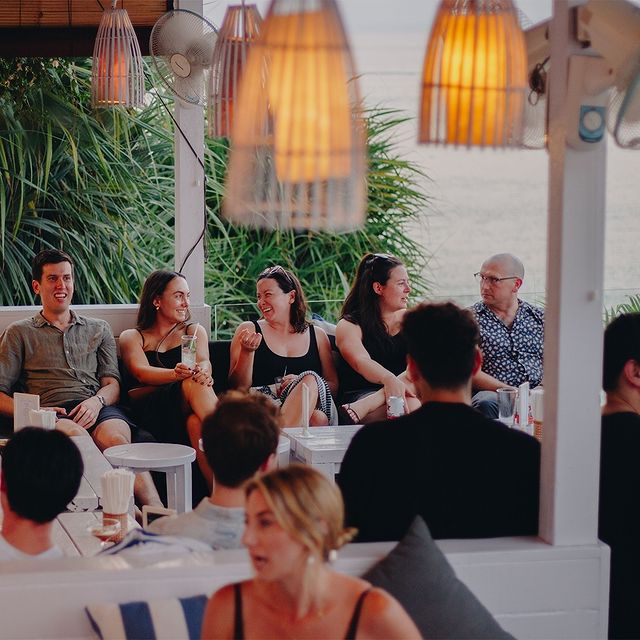 A beach club on Jungut Batu Beach with a stunning ocean view. It offers a wide range of cocktails, wines, and beers. They serve delicious food, and sunbeds and umbrellas are available for guests.