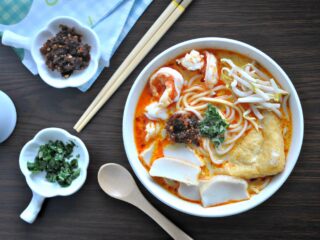 Kim Choo Kueh Chang is a Peranakan-style rice dumpling that is made with glutinous rice, filled with pork belly, mushrooms, and dried shrimp, and wrapped in pandan leaves. They also offer a vegetarian option.