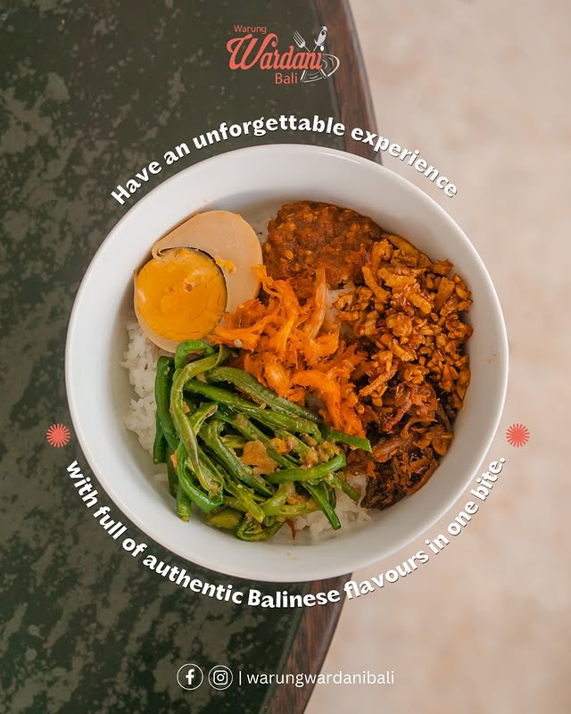 Menikmati makanan di sini adalah pengalaman yang sangat berkesan! Kombinasi lauknya sangat variatif, dan bumbu khas Bali yang digunakan membuat rasa itu sangat menarik.